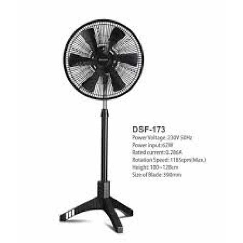 The DuraVolt 17" Standing Fan DSF-173 delivers strong and consistent airflow with a durable fan motor and wide oscillation coverage. It features adjustable height, stable base support, and multi-speed control for effective cooling in homes and offices while maintaining low power consumption.