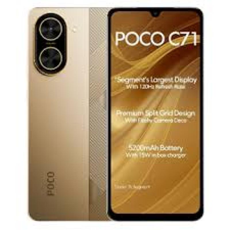 The POCO C71 3GB / 64GB features a large touchscreen display designed for clear visuals and everyday use. It is equipped with 3GB RAM and 64GB internal storage to support calls, messaging, social apps, and media files. The device includes rear and front cameras for capturing photos and video calls, dual SIM support for flexible network usage, and a rechargeable battery suited for daily operation. Its Android-based operating system and modern design make it suitable for entry-level smartphone users.