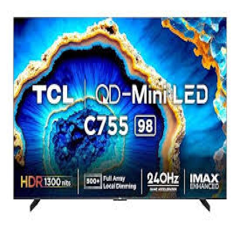 The TCL 98C755 is a 98-inch QD-Mini LED 4K Google Smart TV designed for ultra-premium large-screen entertainment. It combines Quantum Dot colour technology with Mini LED backlighting to deliver high brightness, deep contrast, and lifelike visuals. The 4K Ultra HD resolution provides sharp image detail, while advanced HDR formats enhance colour depth and dynamic range. Powered by Google TV, it offers access to streaming apps, voice control with Google Assistant, and built-in Chromecast for seamless screen casting. The TV also includes high refresh rate and gaming features for smooth motion and responsive performance.