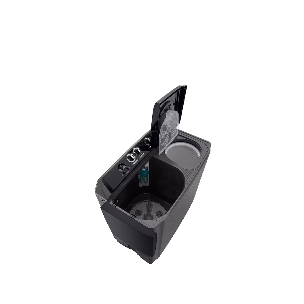 The LG 15kg Twin Tub Roller Jet Washing Machine features a powerful roller jet technology for efficient washing. It has a spacious 15kg capacity, making it ideal for large families. This machine includes dual wash settings and a separate spin dryer for maximum convenience. The black finish adds a sleek touch to any laundry room.