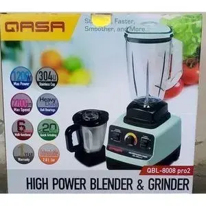 The Qasa High Power 1400W Blender & Grinder (Model: QBL-8008 Pro2) is designed for those who demand efficiency and versatility in their kitchen. With a powerful 1400W motor and a 2-liter BPA-free jar, this appliance excels at both blending and grinding, making meal preparation a breeze.