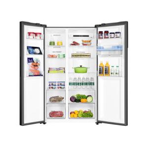 The Haier Thermocool 540L Side-by-Side Refrigerator (HRF-540WBS BLK) combines modern design with cutting-edge technology. Featuring Inverter technology, it ensures energy-efficient and quiet operation. The Frost Free system prevents ice buildup, eliminating the need for manual defrosting. The built-in water dispenser offers chilled water on demand, while multi-airflow cooling ensures uniform temperature distribution. Adjustable shelves, LED interior lighting, and humidity-controlled drawers help maintain food freshness, and the sleek black finish adds a contemporary touch to any kitchen.