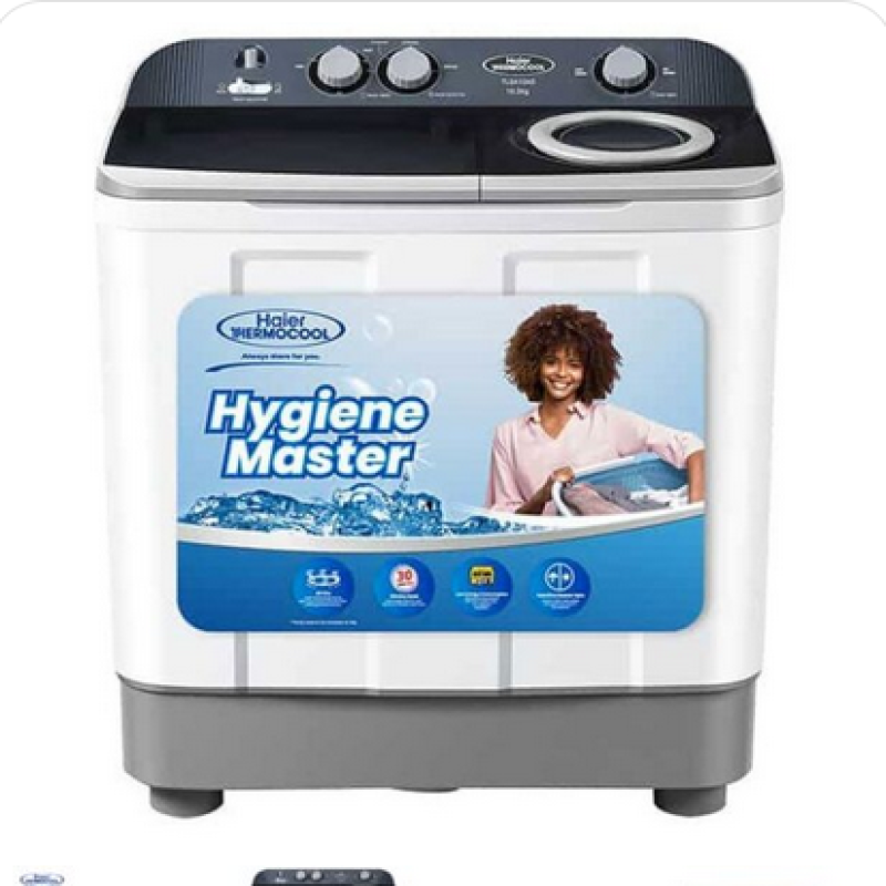 The Haier Thermocool 8kg Top Load Semi-Automatic Washing Machine (TLSA08AD) delivers efficient laundry performance with an 8 kg washing capacity and a 4.5 kg spin capacity to handle daily and bulky loads with ease. It features a semi-automatic wash system with manual water filling and automated wash and spin cycles for convenience, while the pre-soak function up to 30 minutes helps remove stubborn stains. The anti-bacterial pulsator and magic lint filter ensure hygienic washing and reduce lint buildup, and the tub dry function minimizes odor by drying the drum after use. Built with a pure plastic cabinet and anti-rust shell, this washing machine is durable, lightweight, and water resistant. Safety is enhanced by the child safety lock and rat guard baseplate, and the smart memory resumes the wash cycle after a power cut. The removable truckle design adds mobility, and electrical components are protected against water spillage for added safety. This top-load washer also offers energy-efficient operation and adjustable wash programs to suit your laundry needs.