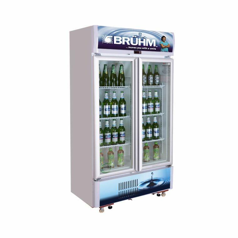 Introducing the BRUHM 570L Double Door Beverage Cooler (BBD-609M), the perfect solution for efficient beverage storage in both commercial and home settings. This spacious cooler features mechanical temperature control with an easy-to-read display, allowing you to maintain the perfect chilling conditions for your drinks. The front air blowing design enhances cooling efficiency, while the double glass doors provide a stylish view of your beverage collection. With adjustable shelves, you can customize the interior layout to fit various bottle sizes. An interior LED light ensures everything is easily visible, and the recessed handle adds a modern touch to its sleek design.
