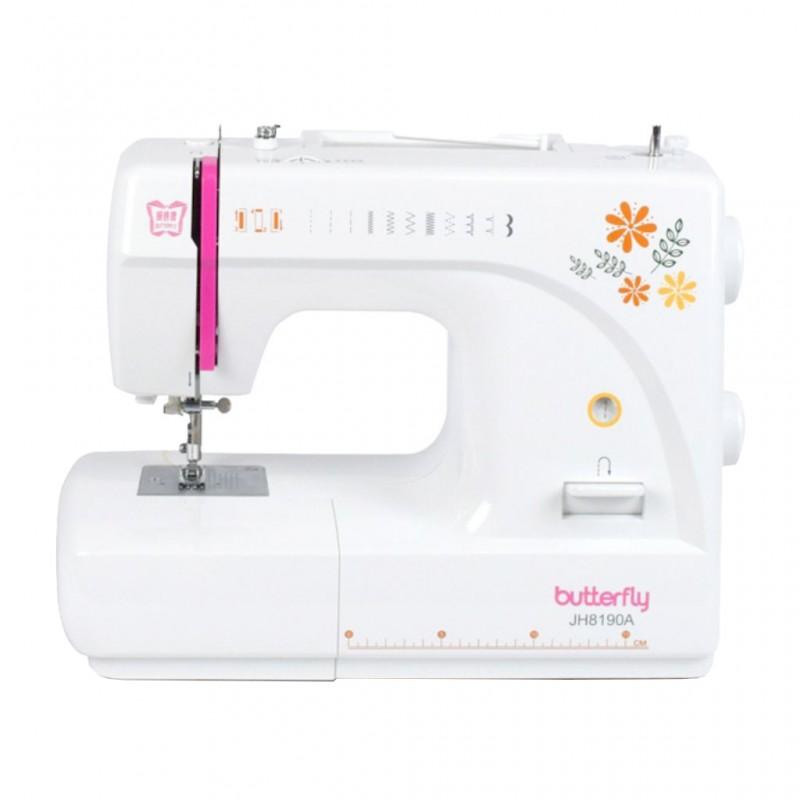 The Butterfly JH8190A Sewing Machine is a compact and easy-to-use machine designed for everyday sewing tasks. It features 10 built-in stitch patterns, including basic, decorative, and zig-zag stitches, with adjustable stitch length for customized sewing. Equipped with an automatic bobbin winder, reverse sewing function, and a built-in thread cutter, it ensures smooth and efficient operation. Its lightweight design makes it portable, while the sturdy construction ensures durability. Ideal for beginners and home sewing projects.