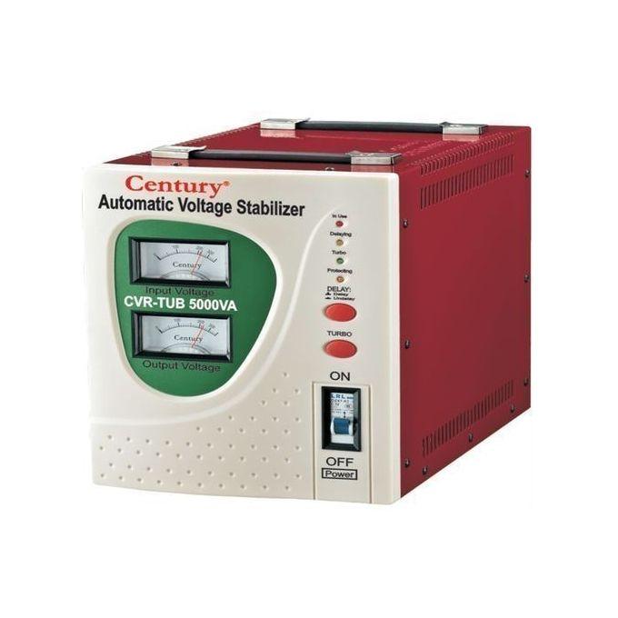 The Century 5000VA Automatic Voltage Stabilizer (CVRTUB5000VA) is designed to provide reliable power stabilization for large appliances. With a capacity of 5000 VA, it is ideal for use with large chest freezers and split unit air conditioners. This stabilizer ensures consistent output of 230V at 50Hz, protecting your devices from voltage fluctuations. Its built-in delay mechanism adds an extra layer of protection, while complete output regulation guarantees optimal performance. Built to last, this stabilizer is a perfect solution for safeguarding your valuable electronics.