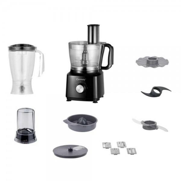 The Century Food Processor & Yam Pounder (CFP-8251) is a versatile and powerful kitchen appliance designed to streamline your cooking and food preparation tasks. With a robust 1000W motor and an exclusive metal drive system, this processor delivers reliable performance for a variety of culinary needs. It features motor overheating protection for safe operation during extended use. The included dough blade makes kneading dough effortless, while the stainless steel chopping blades ensure precision in slicing and chopping. The appliance comes with a generous 1.75L blending jar and a 1.2L work bowl for versatile food processing. Additionally, a citrus juicer attachment is provided for easy juicing. Designed for ease of use and maintenance, this food processor can handle everything from minced meat and chopped vegetables to juicing, soy milk preparation, grinding, and yam pounding, all in one convenient unit.