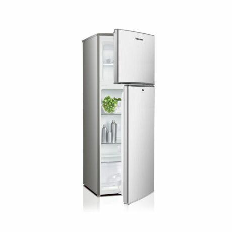 Introducing the BRUHM BFD-195MD Double Door Refrigerator, designed for both style and functionality with a total capacity of 181 liters. Featuring a striking silver door and a sleek grey body, this refrigerator enhances any kitchen space. The reversible door allows for versatile installation options, while the mechanical temperature control provides easy adjustments for optimal cooling. With two glass shelves and a large freezer zone, this model ensures efficient organization and storage of your food items.