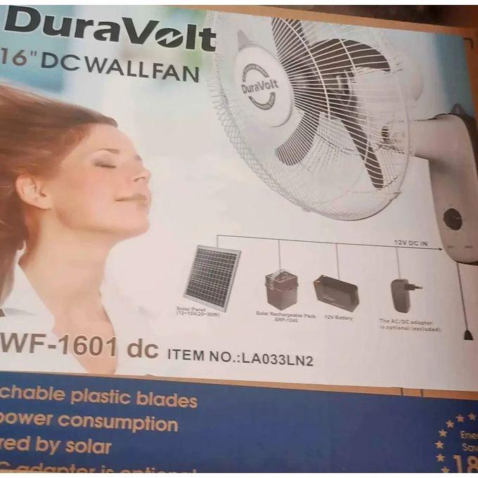 The Duravolt Wall Fan 16" DWF-1601 DC offers powerful air circulation with adjustable speed settings, a sleek white design, and a quiet operation for a peaceful environment. It is designed for easy wall mounting, ensuring efficient use of space in any room.