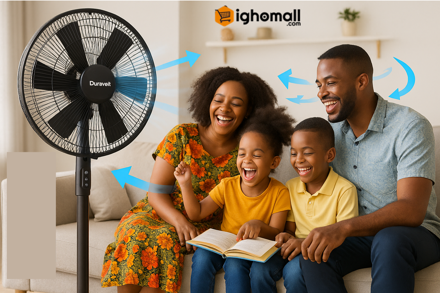 Buy the Duravolt 17 Inches Standing Fan (DSF-173) - Black online at Ighomall.com for the best price in Nigeria. Enjoy powerful cooling, adjustable height, and quiet operation—perfect for home or office. Order now for fast delivery!