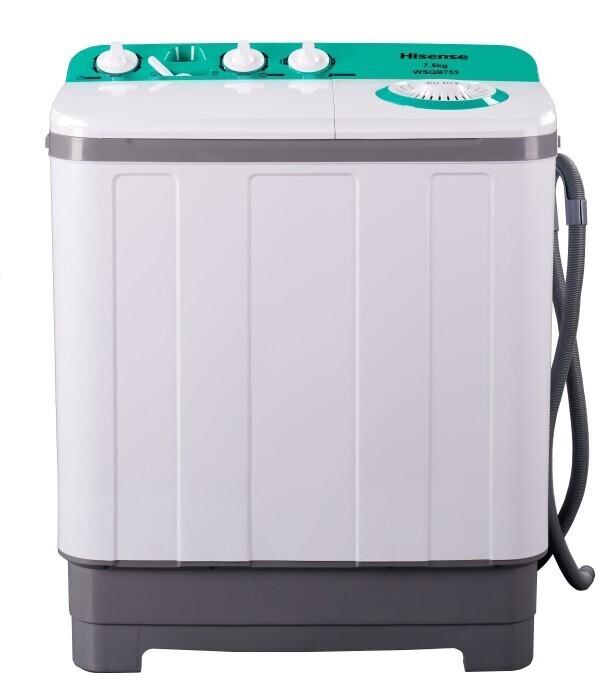 The Hisense WM753-WSQB features a spacious 7.5KG washing capacity and a separate 5KG spin dryer, ideal for efficient laundry handling. Its twin tub design allows simultaneous washing and spinning for maximum efficiency. The machine is equipped with a user-friendly control panel and a transparent lid for monitoring wash cycles. It also includes a powerful motor for effective washing performance and multiple washing programs to cater to various fabric types. Energy-efficient, it operates quietly while delivering excellent wash results.