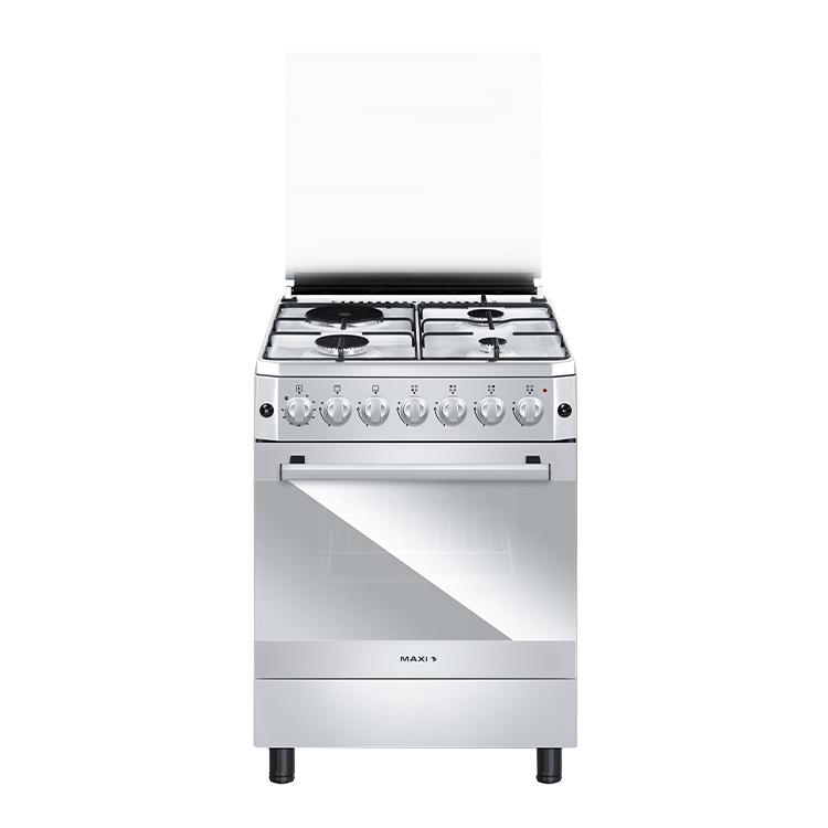 The Maxi 60*60 (3+1) Burner Gas Cooker INOX PLUS features three gas burners and one electric hotplate, offering versatile cooking options. The cooker’s stainless steel body ensures durability and a sleek finish. It includes a spacious oven with a grill function, ideal for baking and grilling. The automatic ignition system ensures quick and easy startup, while the oven's non-stick interior allows for effortless cleaning. The cooker’s compact design is perfect for modern kitchens, combining functionality with a stylish, long-lasting design.