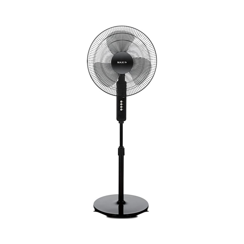 The Maxi Standing Fan 16 inch Black (40-19MR) is a high-performance fan designed to provide efficient air circulation in medium-sized rooms. Equipped with multiple speed settings, an adjustable height, and a sleek black finish, this fan delivers comfort and style. Its easy-to-use controls and quiet operation make it an excellent choice for both home and office use.