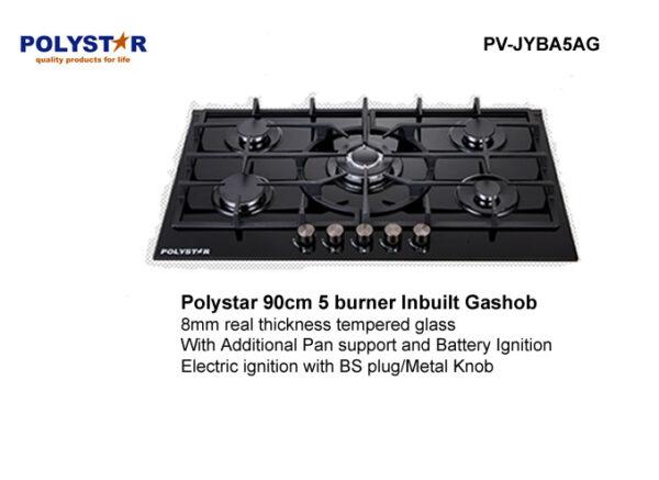 - Model: POLYSTAR 5 Burner Tempered Glass Built-In Gas Hub (PV-JYBA5AG)