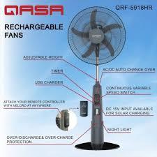 - Model: Qasa 16 Inches Rechargeable Fan QRF-7916 Vigor