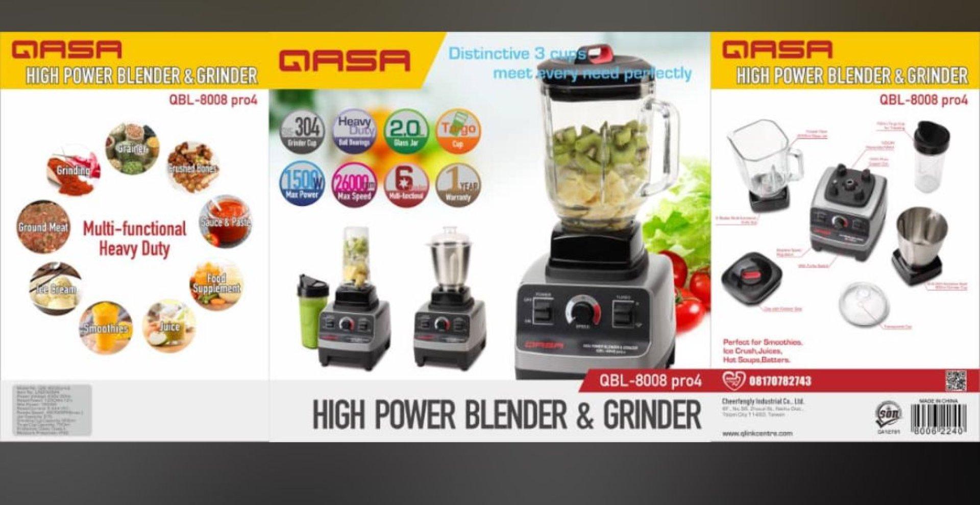 The Qasa High Power Blender (Model: QBL-8008 Pro4) is designed for serious blending enthusiasts. Featuring a powerful 1800W motor and a spacious 2.5-liter BPA-free jar, this blender delivers exceptional performance and versatility for all your kitchen needs.