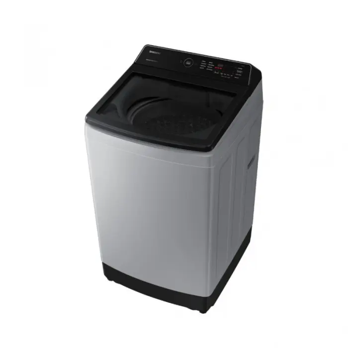 The Samsung Top Load Washing Machine, model WA13CG5441BY, features a spacious 13.0kg washing capacity, ideal for large households. Equipped with Eco Bubble Technology, it enhances washing performance by allowing detergent to penetrate fabrics faster and more effectively. The Digital Inverter Motor ensures energy efficiency and operates quietly, backed by a 20-year warranty. With a sleek LED panel display, users can easily monitor and control wash cycles. The machine includes advanced features like Smart Check for troubleshooting via the SmartThings app, Dual Storm™ for optimal cleaning, and a gentle 2nd Generation Diamond Drum to protect fabrics.