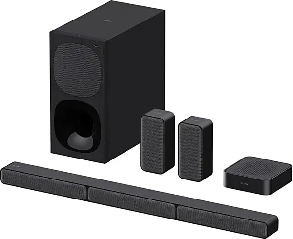 The SONY AUDIO 5.1 600W SOUND BAR HT-S40R delivers powerful surround sound with a total output of 600 watts. It features a wireless subwoofer for deep bass, multiple audio modes to enhance your viewing experience, and Bluetooth connectivity for seamless wireless streaming. The soundbar supports HDMI ARC for easy connection to your TV, along with optical and USB inputs. Enjoy cinematic sound in the comfort of your home with its sleek design and remote control for convenience.