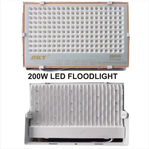 The AKT 200W LED Floodlight with Glass Front is a high-performance lighting solution designed for both indoor and outdoor applications. Featuring a robust die-cast aluminum housing and a glass front, this floodlight offers enhanced durability and resistance to heat and water. It provides bright illumination suitable for various settings, including security lighting for warehouses, parks, and residential areas.