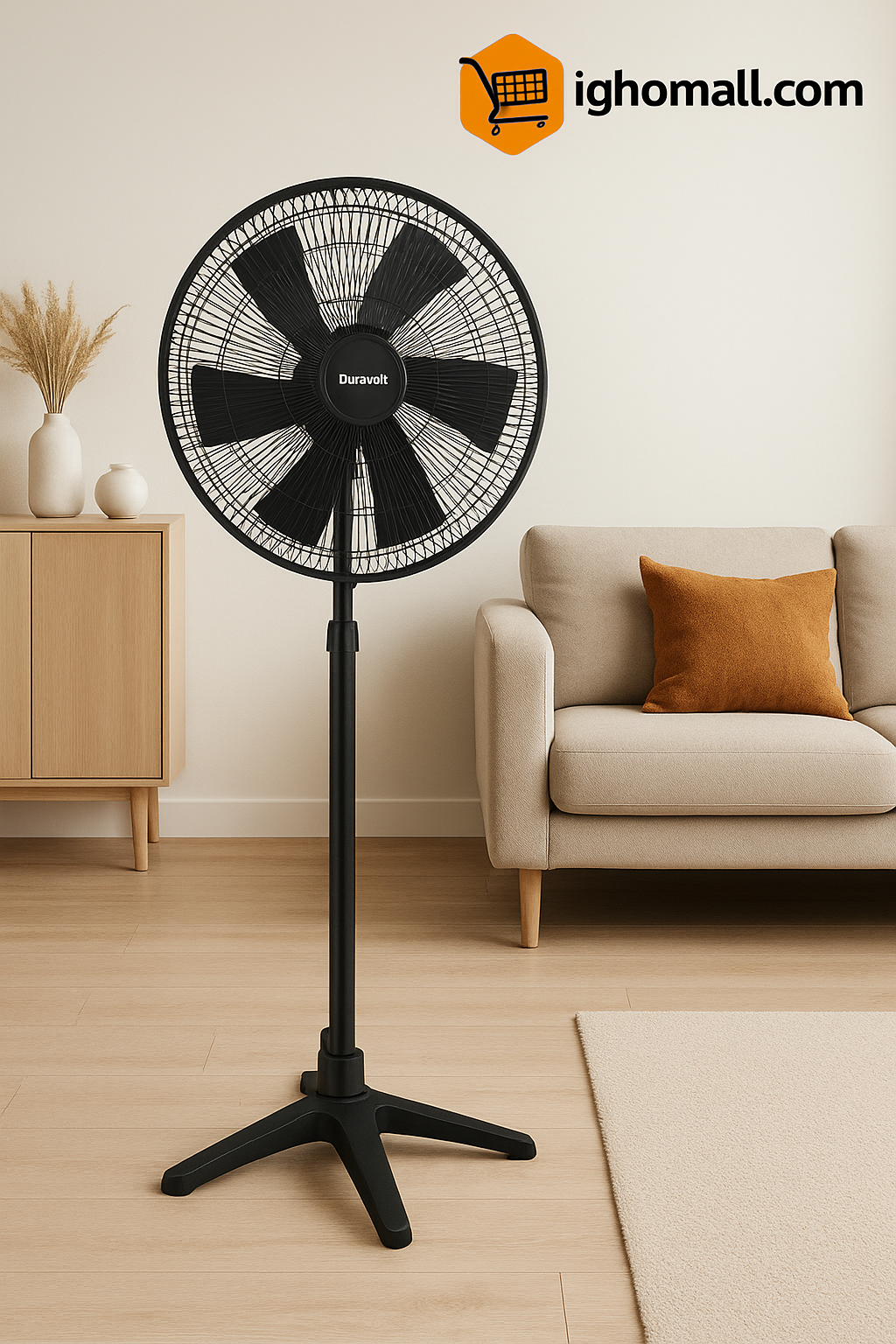 Buy the Duravolt 17 Inches Standing Fan (DSF-173) - Black online at Ighomall.com for the best price in Nigeria. Enjoy powerful cooling, adjustable height, and quiet operation—perfect for home or office. Order now for fast delivery!